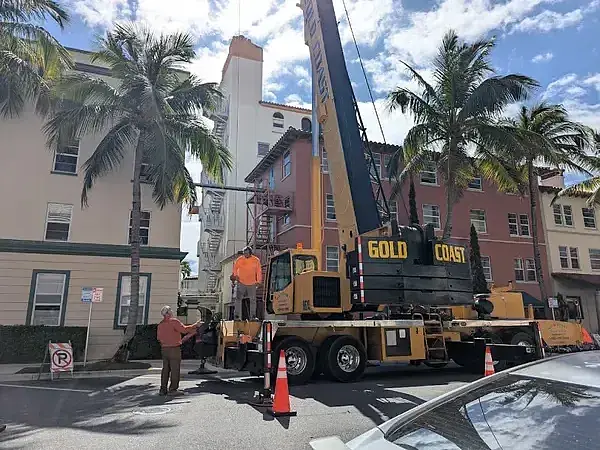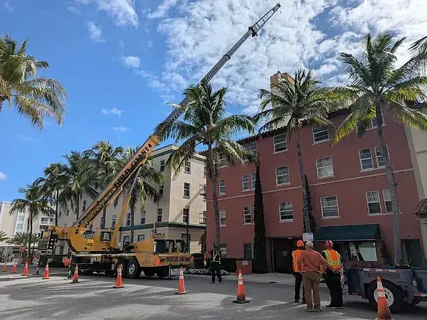 We recently engineered and executed a multi-stage road closure and MOT plan for a complex crane hoist and elevator replacement at a historic Mizner-designed landmark.